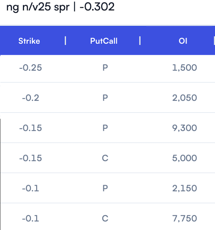 - Price and spread just collapsed into the close and I am pretty sure N/Q and N/V CSOs were involved. There was Open Interest on N/V CSO all the way from -0.15 puts to -0.25 put as the spread went from -0.12 to -0.302 in a week and into Option Expiry