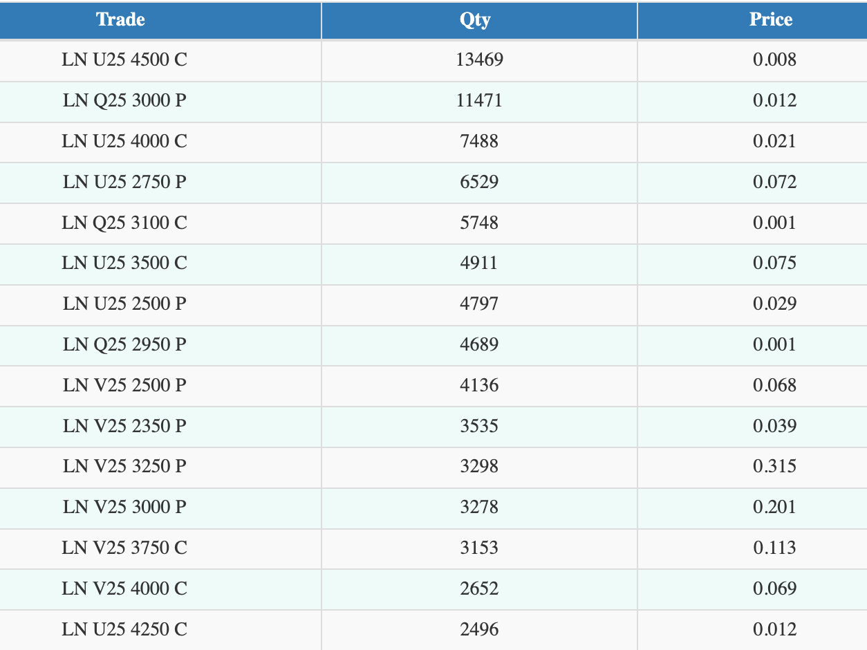 - Monday had two things going. August expiry which pinned it towards the $3.00 strike and some deal in the back which saw everything getting hit in the backs