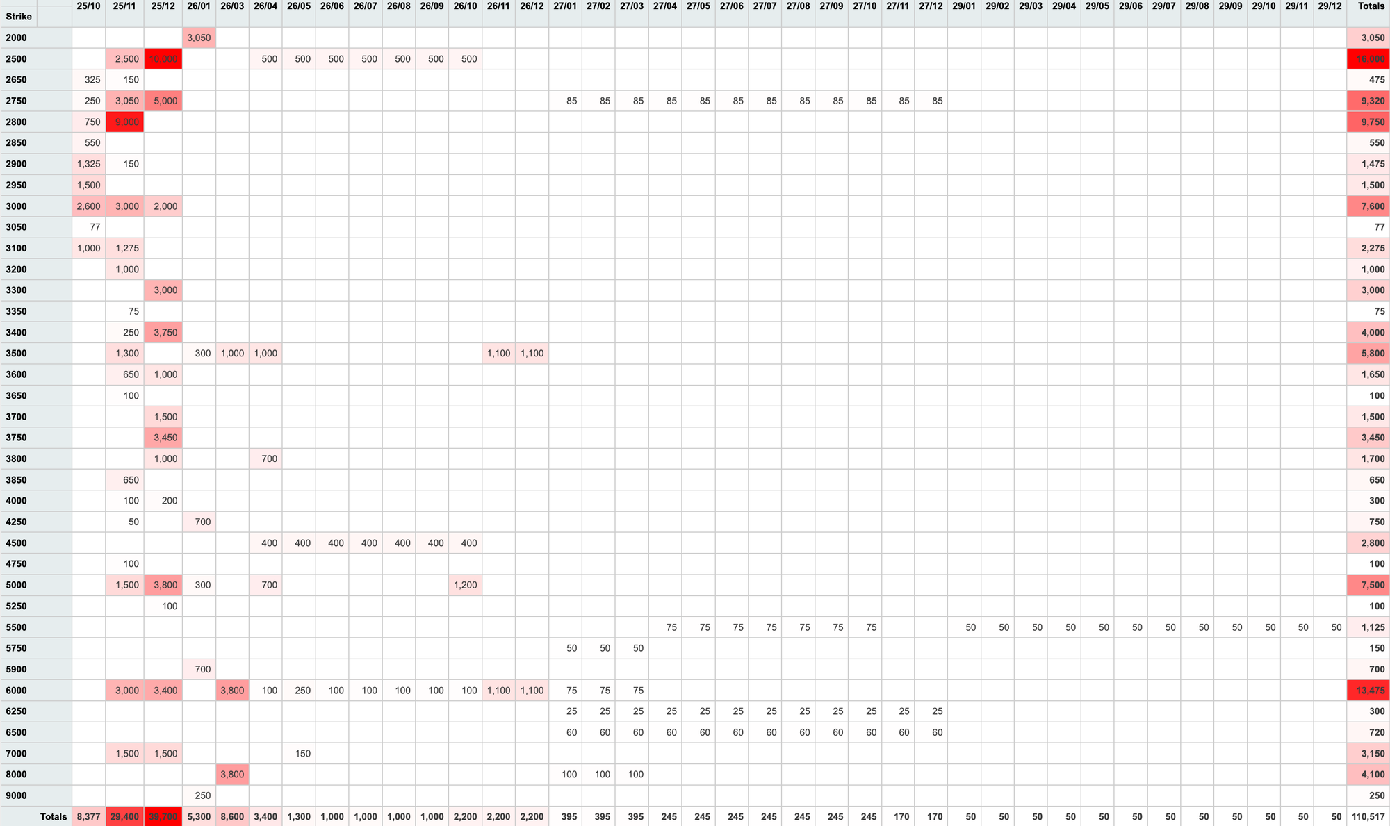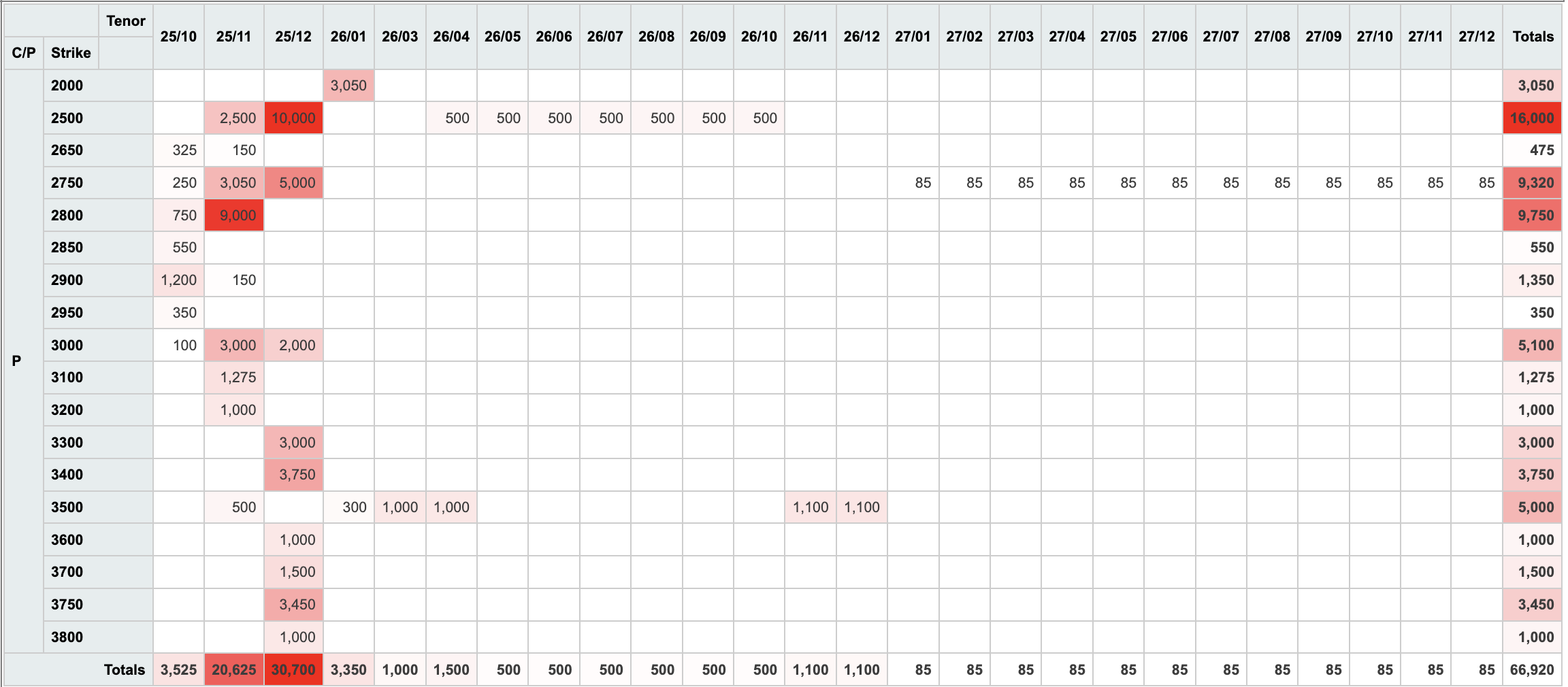 - Over 60% of the volume was on puts with $2 handle strikes active in Nov and Dec