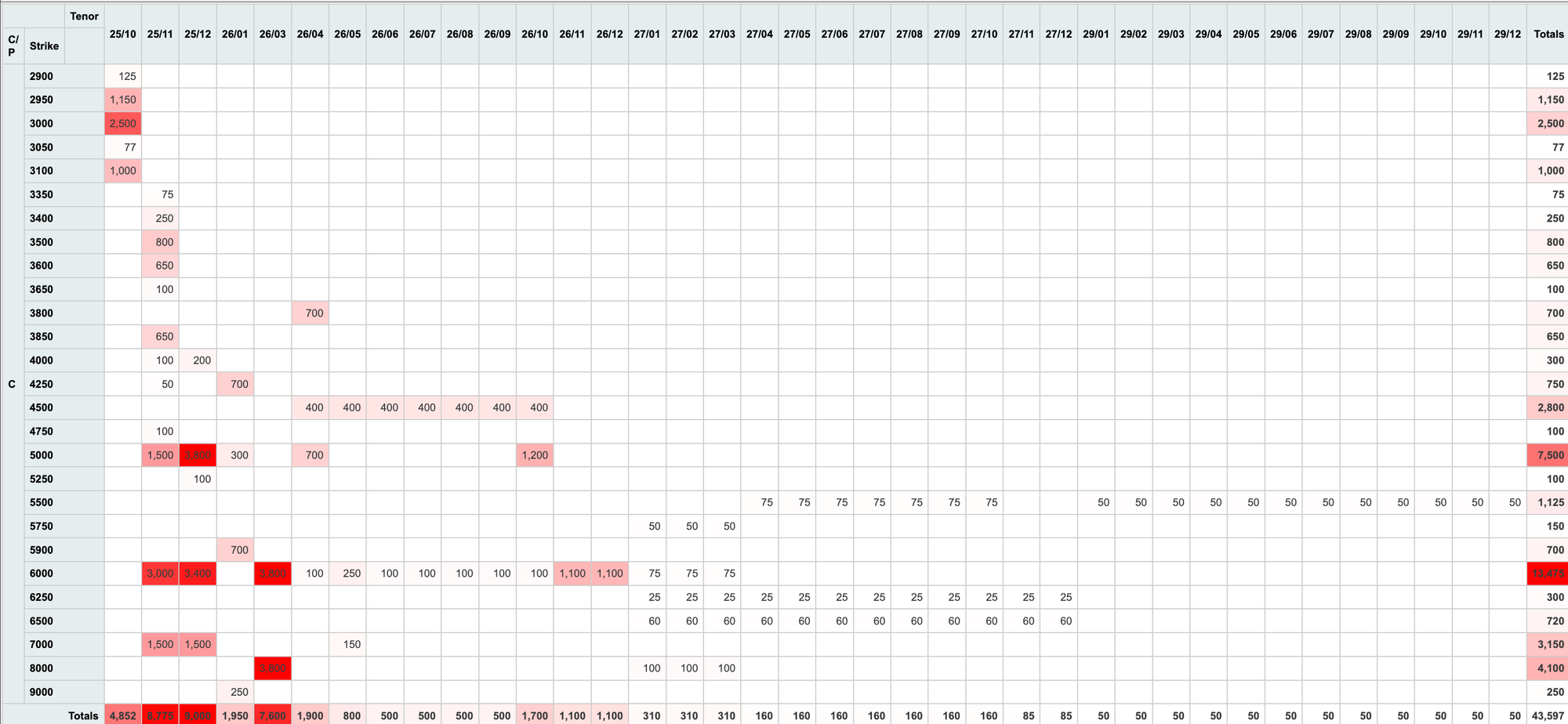 - Bid in calls everywhere, and selling of the puts. Nov vol is also being sold to pay for the forward vol